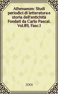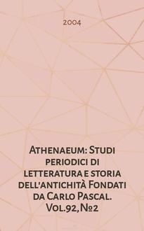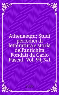 Athenaeum : Studi periodici di letteratura e storia dell'antichità : Fondati da Carlo Pascal