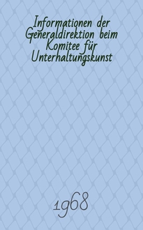 Slomma H. Informationen der Generaldirektion beim Komitee für Unterhaltungskunst : Beilage zur Fachz. "Unterhaltungskunst". 1968, №3/4: , Zur Stellung und sozialen Funktion der ästhetisch- künstlerischen Unterhaltungskultur im entwickelten System des Sozialismus / H. Slomma. - 1968