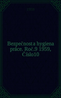 Bezpečnost a hygiena práce. Roč.10 1960, Číslo9