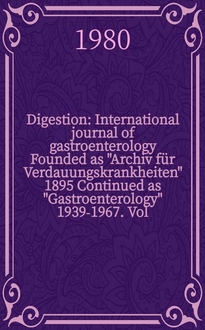 Digestion : International journal of gastroenterology Founded as "Archiv für Verdauungskrankheiten" 1895 Continued as "Gastroenterology" 1939-1967. Vol.68, №2