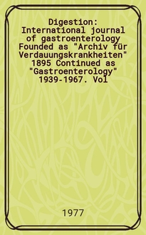 Digestion : International journal of gastroenterology Founded as "Archiv für Verdauungskrankheiten" 1895 Continued as "Gastroenterology" 1939-1967. Vol.67, №3