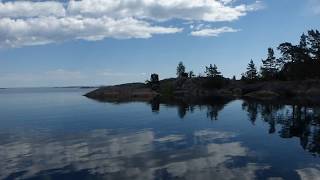 30 Minuten der Fahrt durch den Schärengarten Richtung Stockholm seitlich steuerbords frühmorgens. Sehr gut zum Entspannen beim Anschauen.