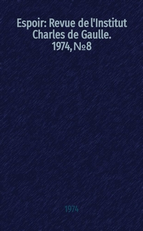 Espoir : Revue de l'Institut Charles de Gaulle. - Paris, 1972-. - Index des articles des onze premiers numéros...[1972-1975] - В журн. ...; 1975, Suppl. an №10/11, с. 5-8. - Index des articles parus dans Espoir [№1-25 1972-1978] - В журн. ..., 1978, №25, с. 68-73