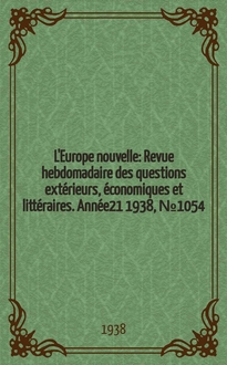 L'Europe nouvelle : Revue hebdomadaire des questions extérieurs, économiques et littéraires. - 1937 Поиск автора для диссертации