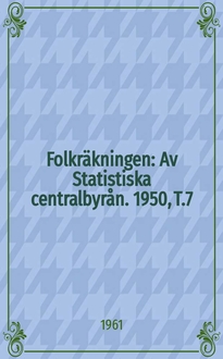 Folkräkningen : Av Statistiska centralbyrån / Sveriges officiella statistik. Folkmängden och dess förändringar. 1945, [T.]10: , Partiella undersökningar. [№] 2. - 1952