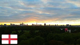 Drönare - Soluppgång över London i England