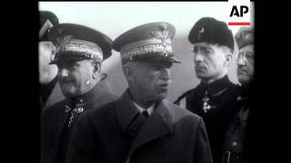 British cabinet ministers leave No 10. These include Sir J Simon, M Laval, Kingsley Wood, Mr Eden and others. Interior of conference room at Geneva. Shot of ...