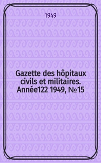 Серии: ; Gazette des hôpitaux civils et militaires