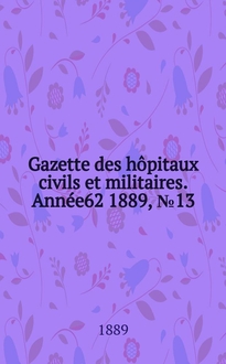 Серии: ; Gazette des hôpitaux civils et militaires