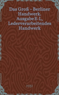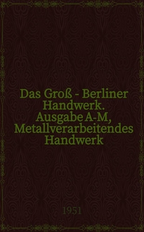 Прежнее заглавие: Das Groß - Berliner Handwerk; Das Handwerk; Последующее заглавие: Feinmechanisches Handwerk;