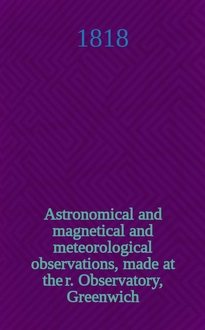Серии: ; Astronomical and magnetical and meteorological observations, made at the r. Observatory, Greenwich