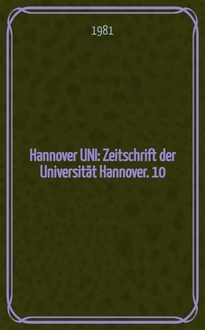 Hannover UNI : Zeitschrift der Universität Hannover. 23: , (Stadt und Landschaft als Lebensraum des Menschen). - 1987