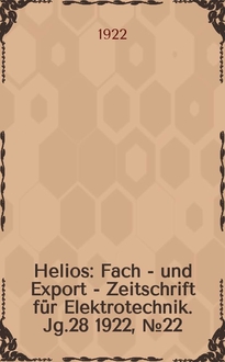 Helios : Fach - und Export - Zeitschrift für Elektrotechnik. - 1929 Найти в библиотеке