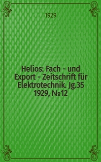 Helios : Fach - und Export - Zeitschrift für Elektrotechnik. Jg.37 1931, №11