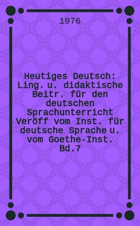 Heutiges Deutsch : Ling. u. didaktische Beitr. für den deutschen Sprachunterricht Veröff vom Inst. für deutsche Sprache Mannheim u. vom Goethe-Inst. Bd.3 : Texte gesprochener deutscher Standardsprache