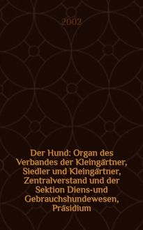 Der Hund : Organ des Verbandes der Kleingärtner, Siedler und Kleingärtner, Zentralverstand und der Sektion Dienst- und Gebrauchshundewesen, Präsidium. 2003, H.10