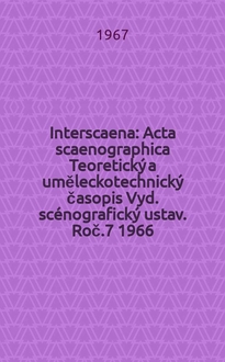 Interscaena : Acta scaenographica Teoretický a uměleckotechnický časopis Vyd. scénografický ustav. Roč.3 1973, č.3