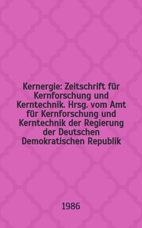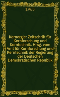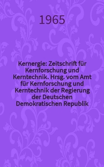 Kernergie : Zeitschrift für Kernforschung und Kerntechnik. Hrsg. vom Amt für Kernforschung und Kerntechnik der Regierung der Deutschen Demokratischen Republik. Jg.8 1965, №6:. - 1965