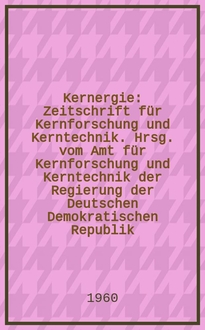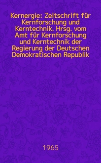 Kernergie : Zeitschrift für Kernforschung und Kerntechnik. Hrsg. vom Amt für Kernforschung und Kerntechnik der Regierung der Deutschen Demokratischen Republik. Jg.11 1968, №11/12:. - 1968
