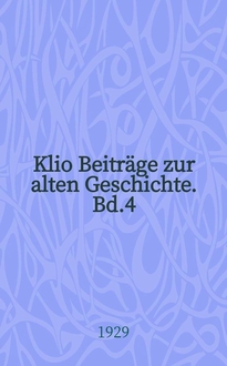 Klio Beiträge zur alten Geschichte. Bd.3(21), H.3/4. В данной книге описывается