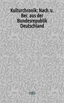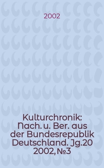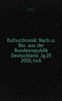 Kulturchronik : Nach. u. Ber. aus der Bundesrepublik Deutschland. Jg.19 2001, №2