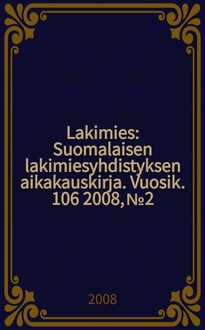 Lakimies : Suomalaisen lakimiesyhdistyksen aikakauskirja. Vuosik.98 2000, №7/8:. - 2000. - с указ.