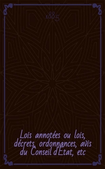 Lois annotées ou lois, décrets , ordonnances, avis du Conseil d'Etat, etc : Avec notes historiques, de concordance et de jurisprudence. 1889
