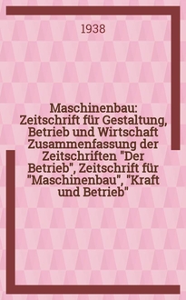 Maschinenbau : Zeitschrift für Gestaltung, Betrieb und Wirtschaft Zusammenfassung der Zeitschriften "Der Betrieb", Zeitschrift für "Maschinenbau", "Kraft und Betrieb", "Zwanglose Mitteilungen des Vereines deutscher Maschinenbau - Anstalten". Bd.9, H.7