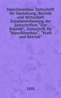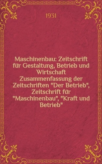 Maschinenbau : Zeitschrift für Gestaltung, Betrieb und Wirtschaft Zusammenfassung der Zeitschriften "Der Betrieb", Zeitschrift für "Maschinenbau", "Kraft und Betrieb", "Zwanglose Mitteilungen des Vereines deutscher Maschinenbau - Anstalten". Bd.9, H.20