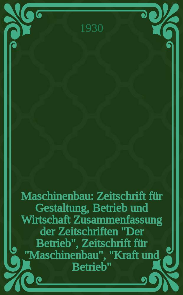 Maschinenbau : Zeitschrift für Gestaltung, Betrieb und Wirtschaft Zusammenfassung der Zeitschriften "Der Betrieb", Zeitschrift für "Maschinenbau", "Kraft und Betrieb", "Zwanglose Mitteilungen des Vereines deutscher Maschinenbau - Anstalten". Bd.9, H.23