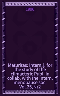 Maturitas : Intern. j. for the study of the climacteric Publ. in collab. with the Intern. menopause soc. Vol.25, №1