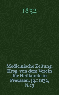 Medicinische Zeitung : Hrsg. von dem Verein für Heilkunde in Preussen. Medicinische Zeitung