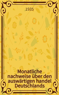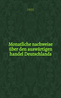 Monatliche nachweise über den auswärtigen handel Deutschlands : Hg. vom statistischen Reichsamt. - Berlin : Verlag für Sozialpolitik, Wirtschaft und Statistik, G. m. h. h., 1935-