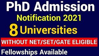 8 GOVT UNIVERSITY PhD ADMISSIONS 2021 I WITHOUT NET, SET, GATE ELIGIBLE I FELLOWSHIPS UPTO Rs 60000. For more job updates & vacancies, ...