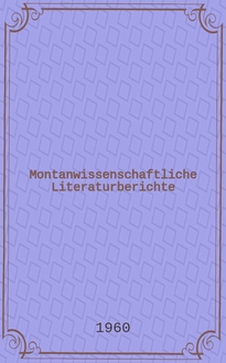 Montanwissenschaftliche Literaturberichte Sonderhefte der "Freiberger Forschungshefte". Jg.5 1959, №13 : Register. В данной книге описывается