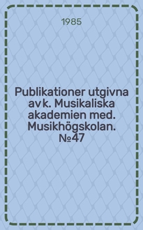 Broman S. Publikationer utgivna av k. Musikaliska akademien med. Musikhögskolan. 35: , Världsmusikfestens facits / S. Broman. - 1982
