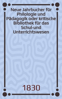 Серии: ; Neue Jahrbucher für Philologie und Pädagogik oder kritische Bibliothek für das Schul-und Unterrichtswesen
