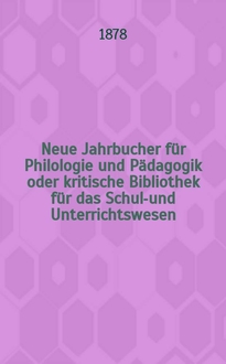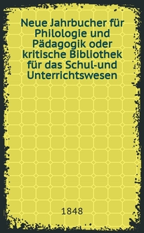 Серии: ; Neue Jahrbucher für Philologie und Pädagogik oder kritische Bibliothek für das Schul-und Unterrichtswesen