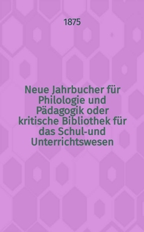 Серии: ; Neue Jahrbucher für Philologie und Pädagogik oder kritische Bibliothek für das Schul-und Unterrichtswesen