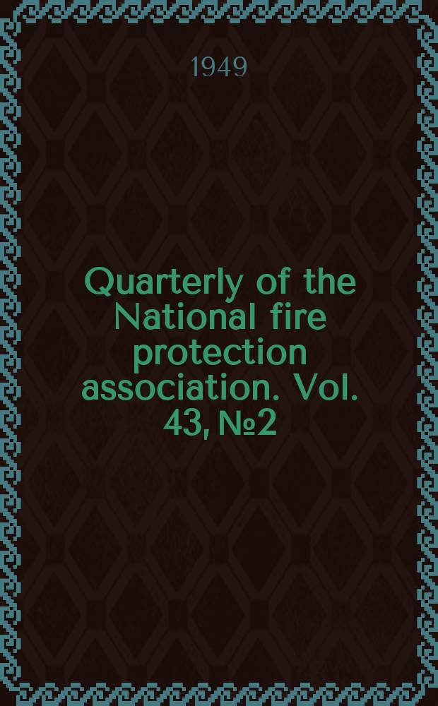 Quarterly of the National fire protection association. Vol. 43, № 2:. - 1949. - (... . ... ; Vol. 43, № 2 1949/1950)