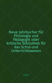 Серии: ; Neue Jahrbucher für Philologie und Pädagogik oder kritische Bibliothek für das Schul-und Unterrichtswesen