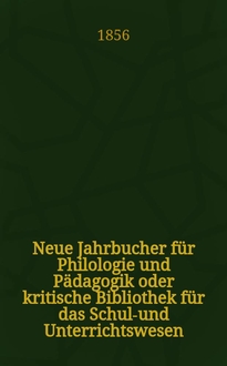 Серии: ; Neue Jahrbucher für Philologie und Pädagogik oder kritische Bibliothek für das Schul-und Unterrichtswesen