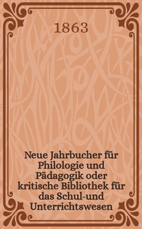 Серии: ; Neue Jahrbucher für Philologie und Pädagogik oder kritische Bibliothek für das Schul-und Unterrichtswesen
