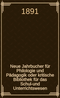 Neue Jahrbucher für Philologie und Pädagogik oder kritische Bibliothek für das Schul-und Unterrichtswesen : In Verbindung mit einem Verein von Gelehrten. Jg.37(61) 1891, Bd.144, H.1