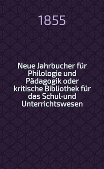 Серии: ; Neue Jahrbucher für Philologie und Pädagogik oder kritische Bibliothek für das Schul-und Unterrichtswesen