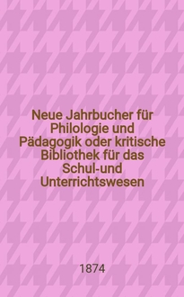 Серии: ; Neue Jahrbucher für Philologie und Pädagogik oder kritische Bibliothek für das Schul-und Unterrichtswesen