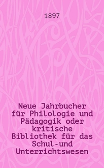 Neue Jahrbucher für Philologie und Pädagogik oder kritische Bibliothek für das Schul-und Unterrichtswesen : In Verbindung mit einem Verein von Gelehrten. Jg.43(67) 1897, Bd.156, H.2