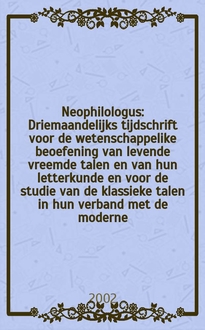 Neophilologus : Driemaandelijks tijdschrift voor de wetenschappelike beoefening van levende vreemde talen en van hun letterkunde en voor de studie van de klassieke talen in hun verband met de moderne / Onder Red. van Prof. Dr. J.J. Salvadere de Grave [en and.]. Vol.88, №1:. - 2004