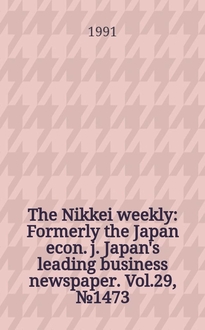 The Nikkei weekly : Formerly the Japan econ. j. Japan's leading business newspaper. Vol.29, №1469:. - 1991