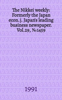 The Nikkei weekly : Formerly the Japan econ. j. Japan's leading business newspaper. Vol.29, №1482:. - 1991